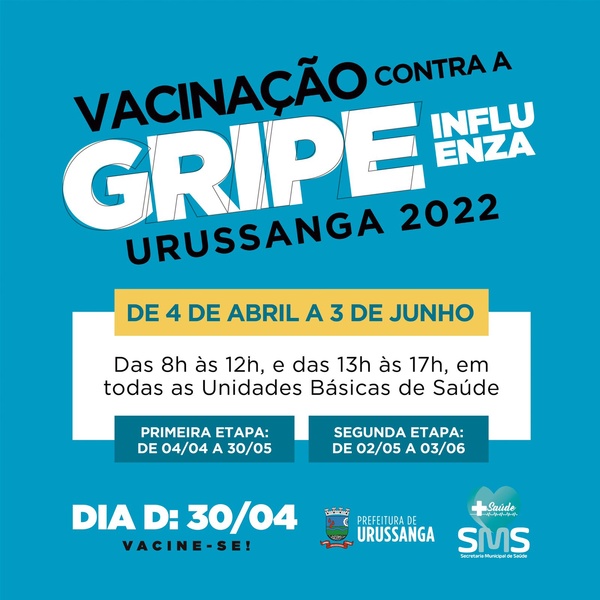 O Governo Municipal de Urussanga, através da Secretaria Municipal de Saúde informa o início da 24º Campanha Nacional de Vacinação contra Gripe.