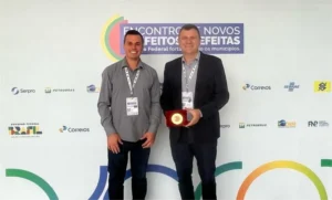 O prefeito Luiz Laurindo e o vice Carlito Darolt receberam o prêmio em Brasília