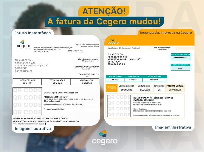A fatura mensal da Cooperativa de Eletricidade de São Ludgero (Cegero) está de cara nova, com a implantação do modelo nacional de documento fiscal eletrônico (modelo 66) que veio para substituir a sistemática atual de emissão da Nota Fiscal/Conta de Energia Elétrica.