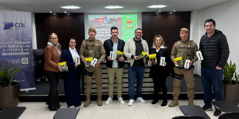 A efetividade do trabalho policial é um ponto determinante para a segurança de uma cidade. É preciso treinamento, estrutura e também equipamentos para responder a cada necessidade. Para reforçar o trabalho ostensivo, a Câmara de Dirigentes Lojistas e o Sicredi promoveram um encontro na noite desta quarta-feira, dia 9. Denominada de Comércio+Seguro, a nova campanha conjunta recebeu o comandante da 1ª Companhia do 29º Batalhão de Polícia Militar, tenente Darlan Witkowski Cruz, e apresentou novos equipamentos para o uso policial em Içara.