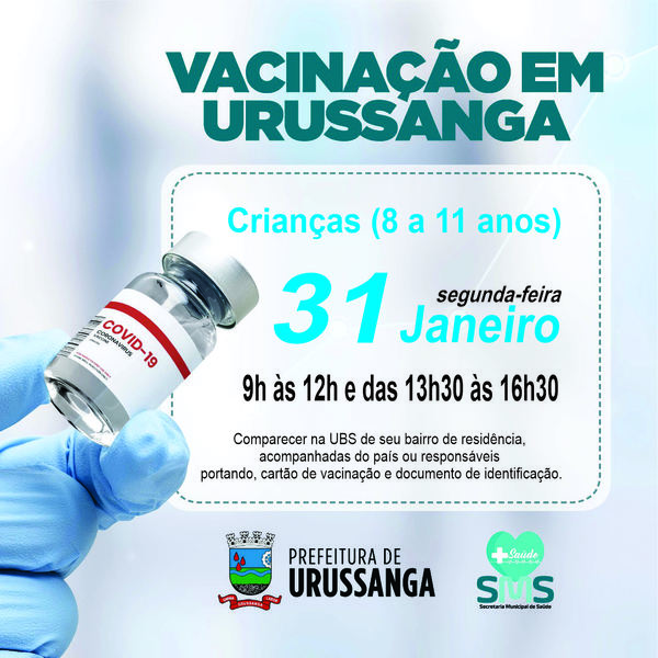 A Secretaria Municipal de Saúde de Urussanga, recebeu um novo lote de vacinas do Estado, para imunização das crianças contra o Covid-19.