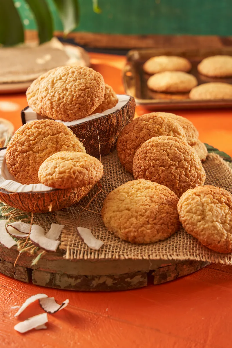 Para começar, vamos com a Broa de Coco, um doce típico da região Nordeste. Essa receita rende 12 unidades e leva cerca de 1 hora para ser preparada. Os ingredientes necessários incluem farinha de trigo, fermento em pó, fermento biológico seco, açúcar cristal, coco ralado seco, Deline Cremosa, ovo e leite.