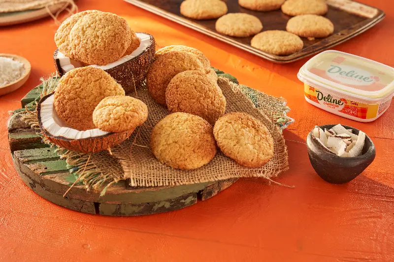 Para começar, vamos com a Broa de Coco, um doce típico da região Nordeste. Essa receita rende 12 unidades e leva cerca de 1 hora para ser preparada. Os ingredientes necessários incluem farinha de trigo, fermento em pó, fermento biológico seco, açúcar cristal, coco ralado seco, Deline Cremosa, ovo e leite.