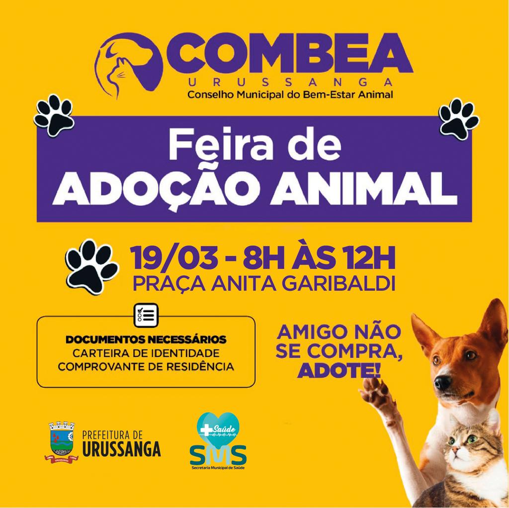 No último sábado (12/03) o Governo Municipal de Urussanga, através do Conselho Municipal de Bem-Estar Animal(COMBEA), cancelou a Feira de Adoção Animal por motivos das fortes chuvas.