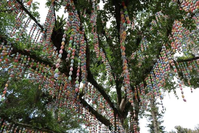 A árvore da Páscoa é montada com um galho seco, que simboliza a frieza e morte do sepulcro de Jesus Cristo. No galho são colocadas cascas de ovos coloridos, que simbolizam a alegria da vida que significa a Ressurreição do Senhor. O ovo significa ou simboliza que há vida dentro dele e dali ela brota, apesar de estar escondida até o momento em que a ruptura acontece. Dentro do ovo está a vida. A Páscoa é Vida, Ressurreição, Esperança e Alegria, apesar da Sexta-feira Santa com a crucificação de Jesus.