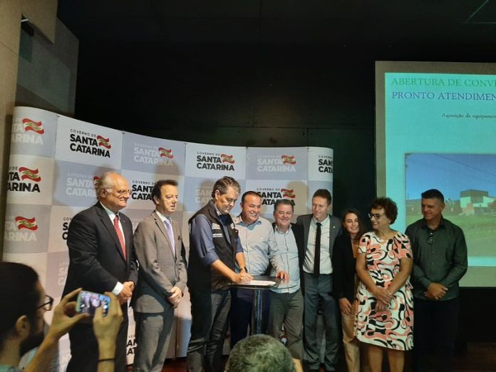 O prefeito de Forquilhinha, José Cláudio Gonçalves, o Neguinho, assinou na manhã desta quarta-feira, dia 30, um convênio com o Governo do Estado por meio da Secretaria de Estado da Saúde, no CIC, em Florianópolis. O investimento será de R$ 990 mil reais para a aquisição de equipamentos e materiais permanentes, entre eles: Raio-X e Ultrassom à nova Unidade de Pronto Atendimento (UPA) de Forquilhinha.