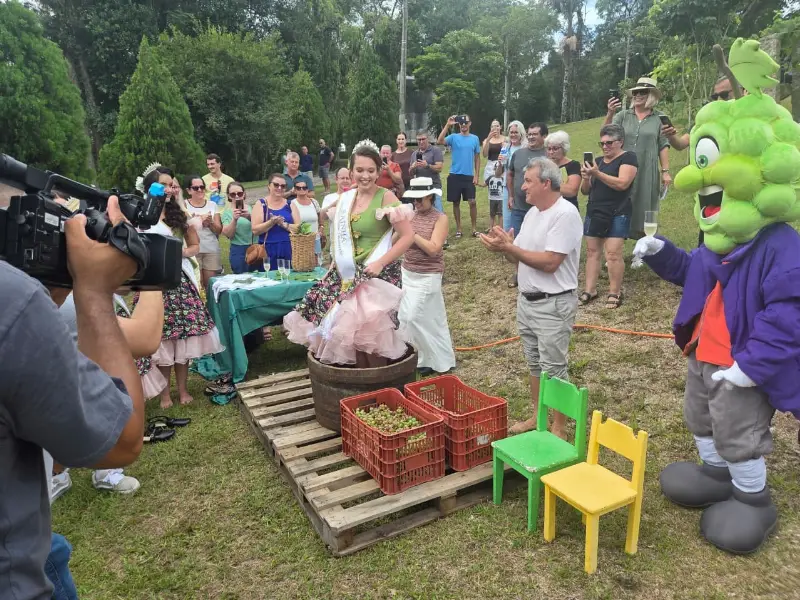 A Vindima do Parque Municipal marcou a primeira colheita da uva Goethe em uma área pública de Urussanga. O evento, realizado pelo Governo Municipal, por meio da Secretaria de Cultura, Turismo e Esporte, em parceria com o Rotary Clube e a Epagri, reuniu a comunidade e turistas no sábado, dia 17, em uma programação que incluiu colheita simbólica, pisa das uvas, degustação e compartilhamento de informações sobre os Vales da Uva Goethe.